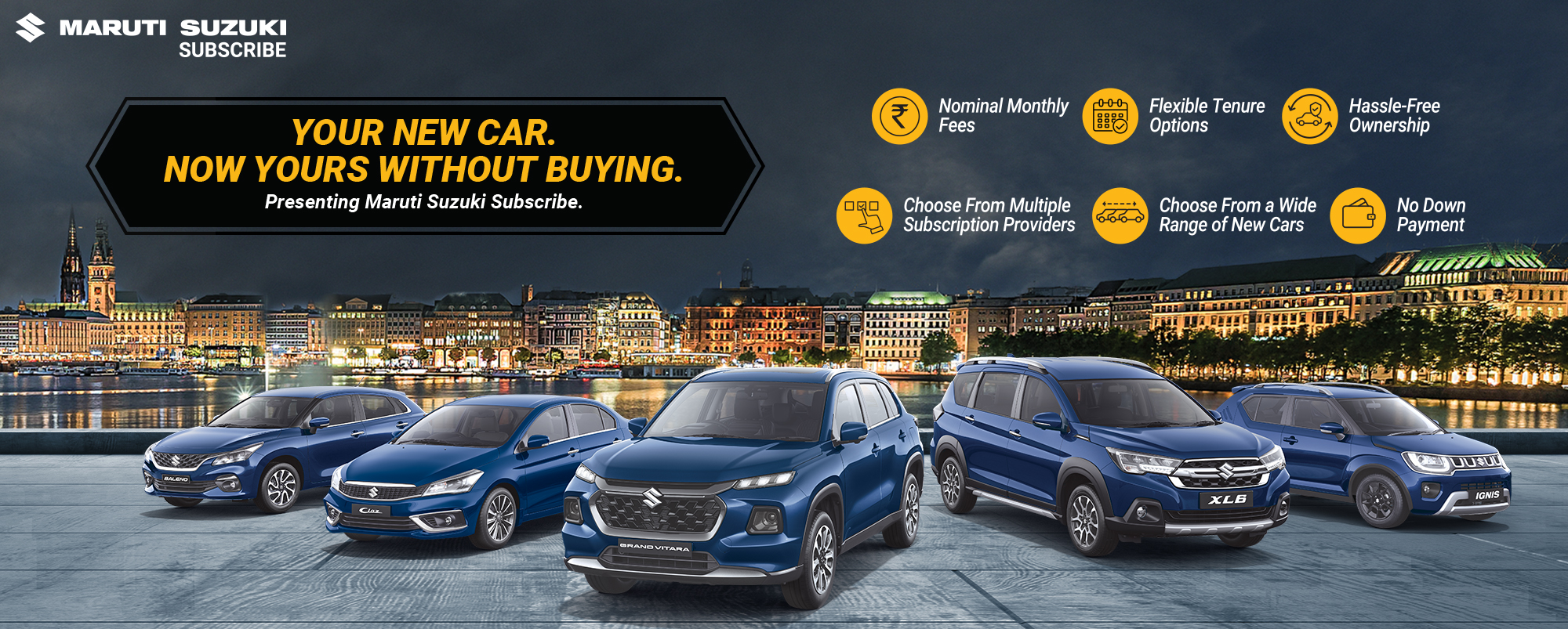 Maruti Suzuki Subscribe enables all customers to enjoy driving their preferred Maruti Suzuki cars without having to deal with all the financial responsibilities that come with owning a car.All you need to do is opt for a monthly subscription plan at a fixed monthly fee, which includes the routine maintenance and insurance costs, and choose a flexible tenure. At Shakti Motors in, Dabwali Road Sirsa, Sirsa, all Hatchback, Sedan, SUV, the MUV models line-up includes Baleno, Invicto, EVitara, Jimny, Ciaz, Ignis, Fronx, Grand Vitara, XL6. Here, you will enjoy Maruti Suzuki Subscribe benefits such as: